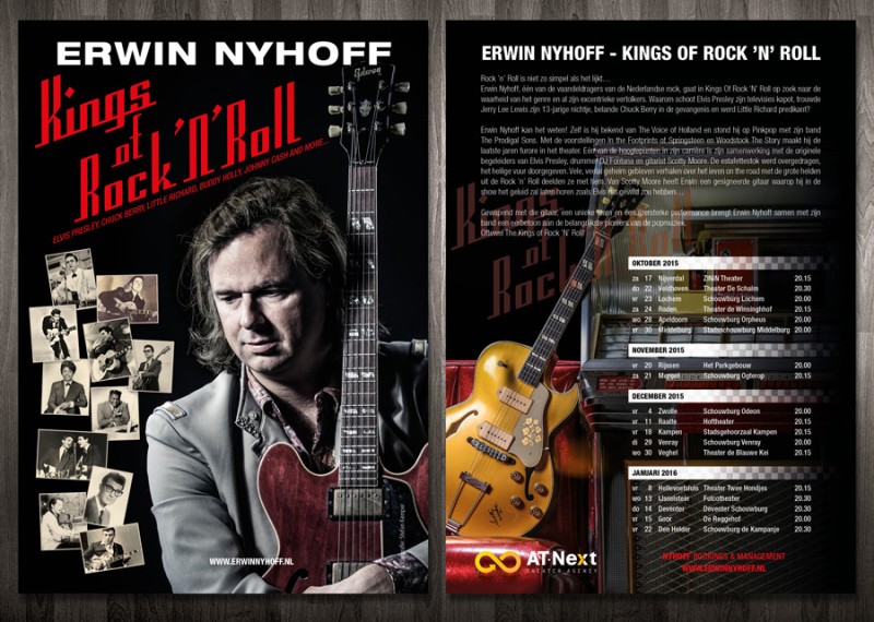 Het is een hoogst gelukkig huwelijk: muziek & verhalen. De mythologie van de vroege rockjaren schreeuwt bijna om een voorstelling. Erwin Nyhoff behandelt de muziek en de levens van zijn helden allemaal in zijn nieuwe theatershow: Kings of Rock’N’Roll. Denk: Buddy Holly, The Everly Brothers, Elvis, uiteraard, en Eddie Cochran, Fats Domino, Carl Perkins, Little Richard, Jerry Lee Lewis, Chuck Berry, Roy Orbison, én oersongschrijver Johnny Cash. Noem het een tribute, een hommage aan de grondleggers. ‘Rock-’n-roll blijft mijn eerste grote liefde. Daar kom je nooit meer van af.’